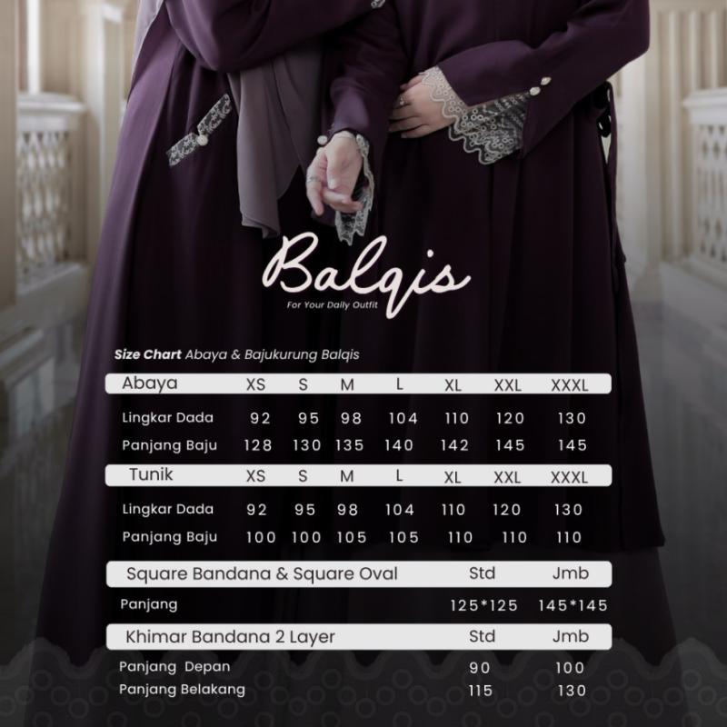 Abaya & Bajukurung Balqis ✨ by Kaen x Emka Daily Pilihan Warna: Black | Oat | Mahoghany | Olea | Dark Wine | Zamrud | Sangria 🌸 Material Premium Queen Marina HQ: adem, lembut, dan jatuh indah Special Black: Marina Jetblack (lebih deep & elegan) 🌸 Abaya Balqis * Ploi tengah, tampilan anggun & flowy * Manset ploi kombinasi brukat + kancing cantik * Saku kanan kiri (praktis) * Wudhu friendly (manset kancing) * Busui friendly (sleting depan) * Lengan manset + karet * Label metal di manset * Lingkar rok lebar, nyaman bergerak * Detail brukat & kancing di bagian saku 🌸 Balqis Tunik * Full material Queen Marina HQ * Ploi belah depan * Manset ploi + brukat & kancing * Saku kanan * Sleting depan (busui friendly) * Belahan kanan kiri * Lingkar rok lebar & nyaman * Tali kanan kiri (bisa dipita) 🌸 Square, Khimar & Square Oval * Ceruty Babydoll HQ (ringan & jatuh cantik) * Bandana square adjustable * Size standar: 125×125 cm * Request jumbo: 145×145 cm * Khimar bandana 2 layer (standar & jumbo) 🌸 Rok Ceruty * Ceruty Babydoll HQ, nyaman harian * Karet pinggang fleksibel * Full furing (tidak terawang) * Size: Standar (XS–M) & Jumbo (L–2XL) * Extra jumbo +20K