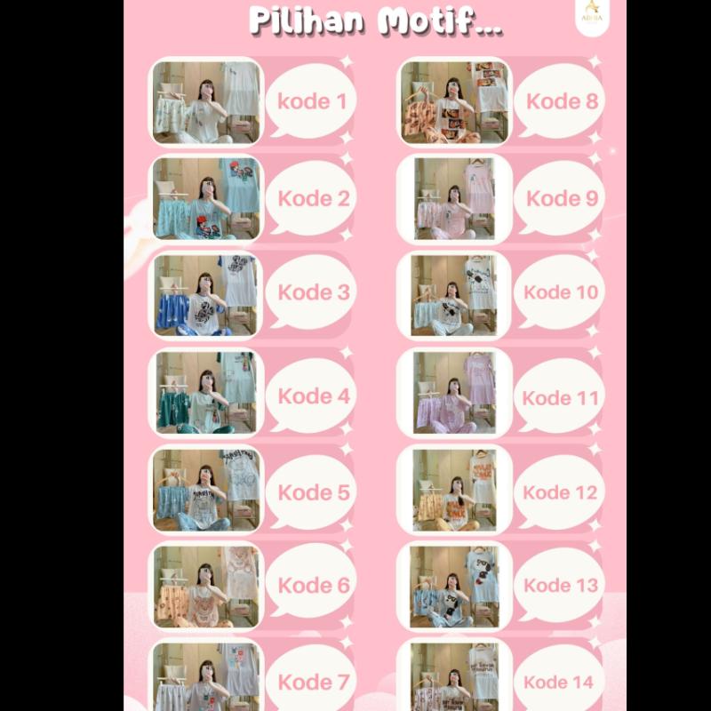 PIYAMA 4 in 1 - - - - - - - - - - - - - ❤️NEW MOTIF❤️ Detail Produk Bahan : Cotton Import tebal, halus, adem, melar/streat 4 in 2 ( celana 2 : panjang dan pendek dan Baju lengan pendek + Daster ) ALL SIZE lingkar dada 120 cm panjang baju 62 cm panjang celana 75 cm Panjang Daster 78 cm Celana pendek 40 cm Rekomendasi BB ( 45-80 Kg ) . Terdapat 14 Pilihan Motif : 📍 Kode 1 📍 Kode 2 📍 Kode 3 📍 Kode 4 📍 Kode 5 📍 Kode 6 📍 Kode 7 📍 Kode 8 📍 Kode 9 📍 Kode 10 📍 Kode 11 📍 Kode 12 📍 Kode 13 📍 Kode 14 Best Price : Rp 155.000,-
