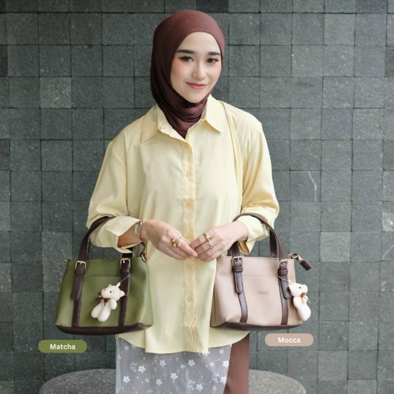 KENALAN lagi yuuk dengan YOVANKA 😍😍 ✅FREE TALI PANJANG ✅FREE BONEKA BAG CHARM Brand : YUKA Yovanka Bag Tas yang lagi banyak dipakai karena design-nya elegant, simple, dan super aesthetic 🤎 Yovanka Bag hadir dengan material premium, bentuk classy, dan bonus boneka charm yang bikin look kamu makin cute & fashionable. Cocok dipakai untuk kuliah, kerja, hangout, atau daily use ✨ Detail Produk: • Material: Premium synthetic leather (tebal & awet) • Ukuran: ± 22 x 16 x 10 cm • Model: Handbag & sling bag (2 in 1) • Strap panjang: Adjustable & detachable • Sistem penutup: Resleting utama (aman) • Hardware: Premium metal hardware • Bonus: Cute teddy charm Kapasitas: Muat banyak essentials harian seperti: ✔ HP ✔ Dompet panjang / pendek ✔ Makeup ✔ Parfum ✔ Charger ✔ dll Keunggulan: ✓ Design elegant & timeless ✓ Material premium & kokoh ✓ Jahitan rapi & kuat ✓ Multifungsi (bisa jinjing atau sling) ✓ Cute charm bikin tas makin aesthetic ✓ Cocok untuk semua outfit