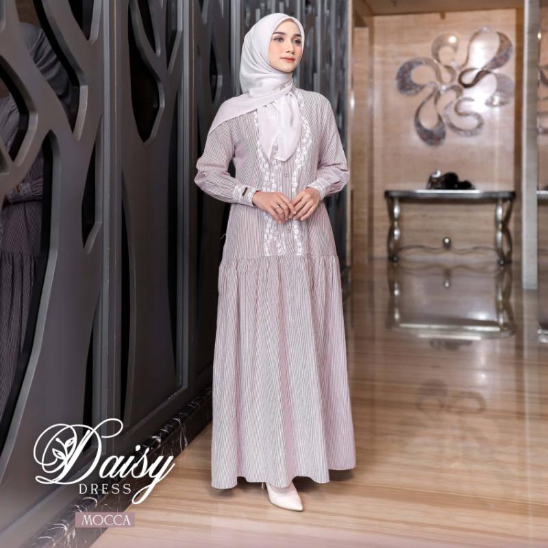 PO Daisy Dress by MEDINA @medinaofficial.idn ✨ Definisi effortlessly stylish. Nyaman, adem.. auto glow up! 🥰👑 Perpaduan motif stripe dengan lace bunga bikin look kamu semakin cantik 🌻 Spesifikasi -Material cotton stripe, berkatakteristik lembut, ringan, dingin dan tidak menerawang -Variasi lace flowery yang mempercantik tampilan dress -Kancing disisi depan dress -Manset kancing pada tangan(wudhu friendly) -Rok mode bertingkat untuk look dress yang makin elegant -Pilihan warna yang soft & manis Pilihan Warna 1.BLUE 2.GREY 3.MOCCA 4.ONYX 5.TEAL